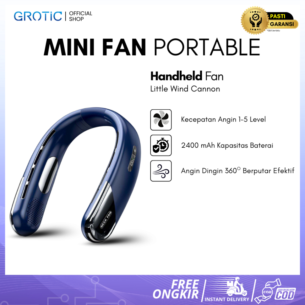 GROTIC Kipas Leher Portable 2400mAh Angin Kencang 5 Kecepatan Desain Ringan Ergonomis & Stylish