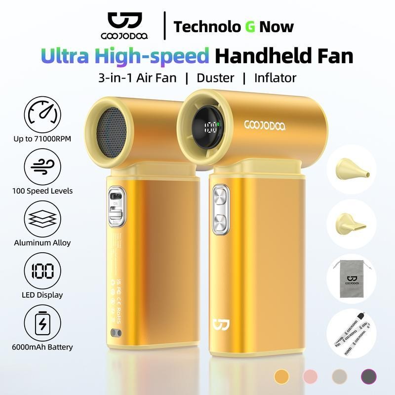 GOOJODOQ 6000mah 23m/s kipas turbo kecepatan super dengan layar LED dua nosel angin tiga kipas mini dalam satu