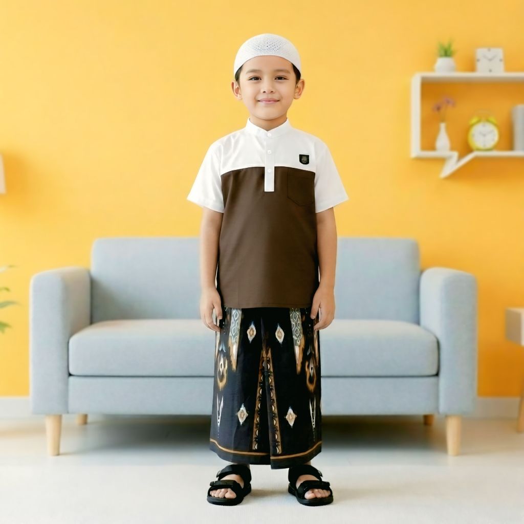 Setelan baju koko anak laki laki lengan pendek usia 3-12 tahun paket lengkap sarkoci