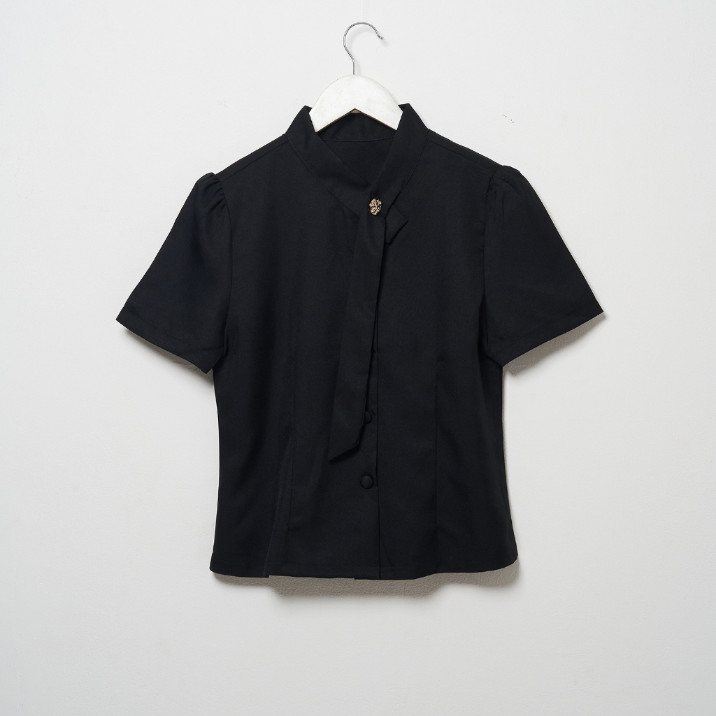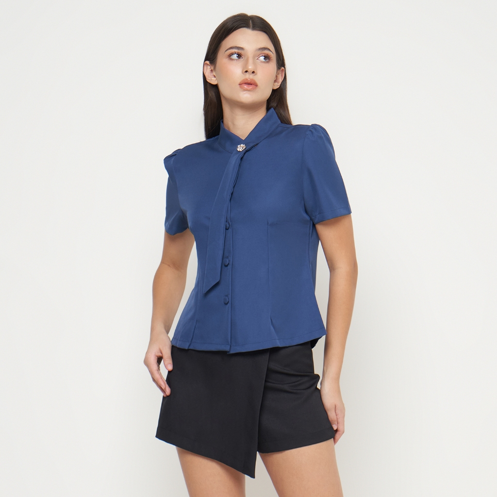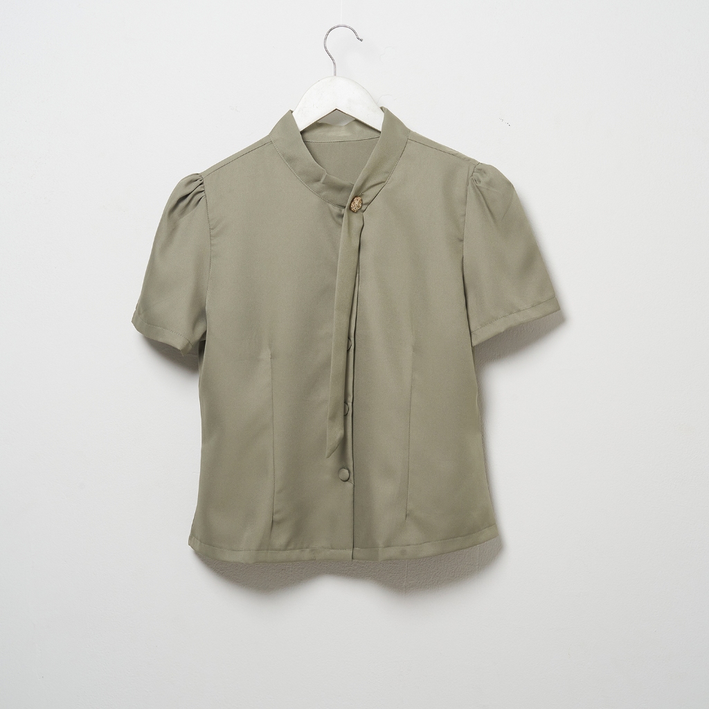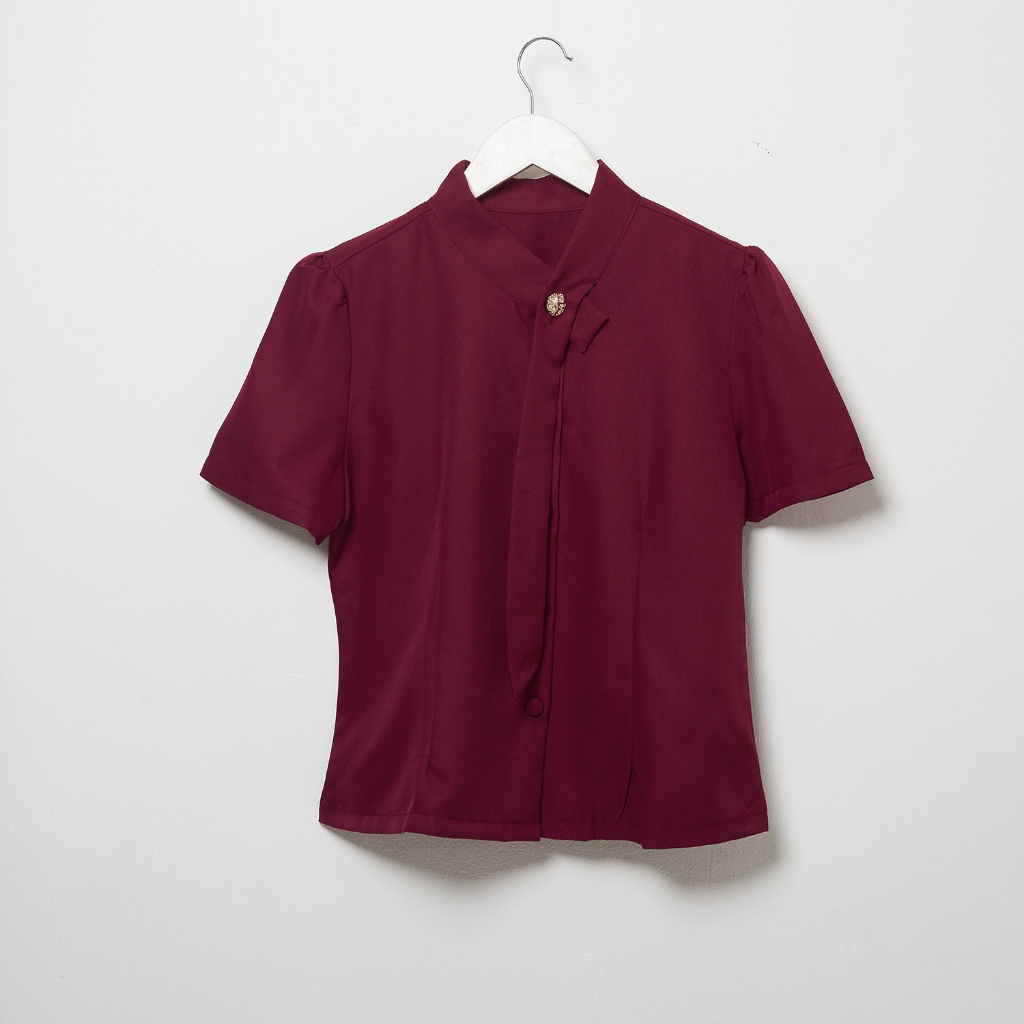 CALEA Evelyn Blouse Wanita Kerah Shanghai Lengan Pendek Elegan Kantor Atasan Kerja Wanita Formal