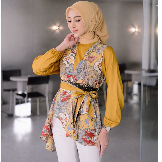Kinanty Atasan Batik Wanita Blouse Kerja Kantor Modern Katun Elegan