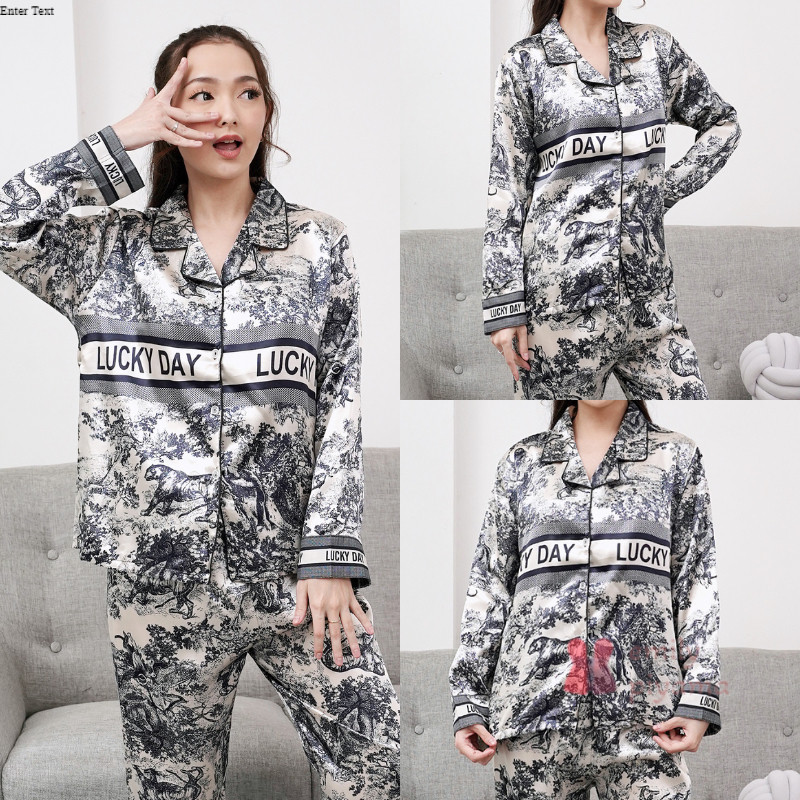 EMILY PIYAMA Baju Tidur Set Piyama Model Lucky Day Kemeja Bahan Satin Premium Pakaian Tidur Wanita Dewasa