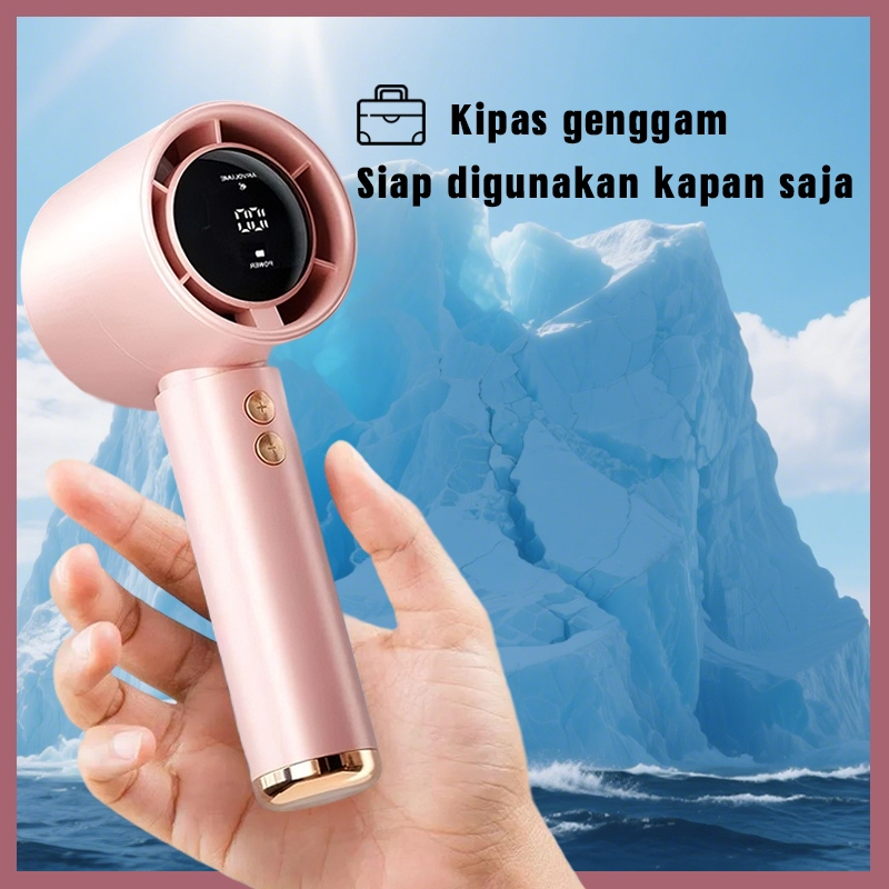 kipas angin mini genggam portable - 100 level kecepatan angin kuat & senyap layar led digital