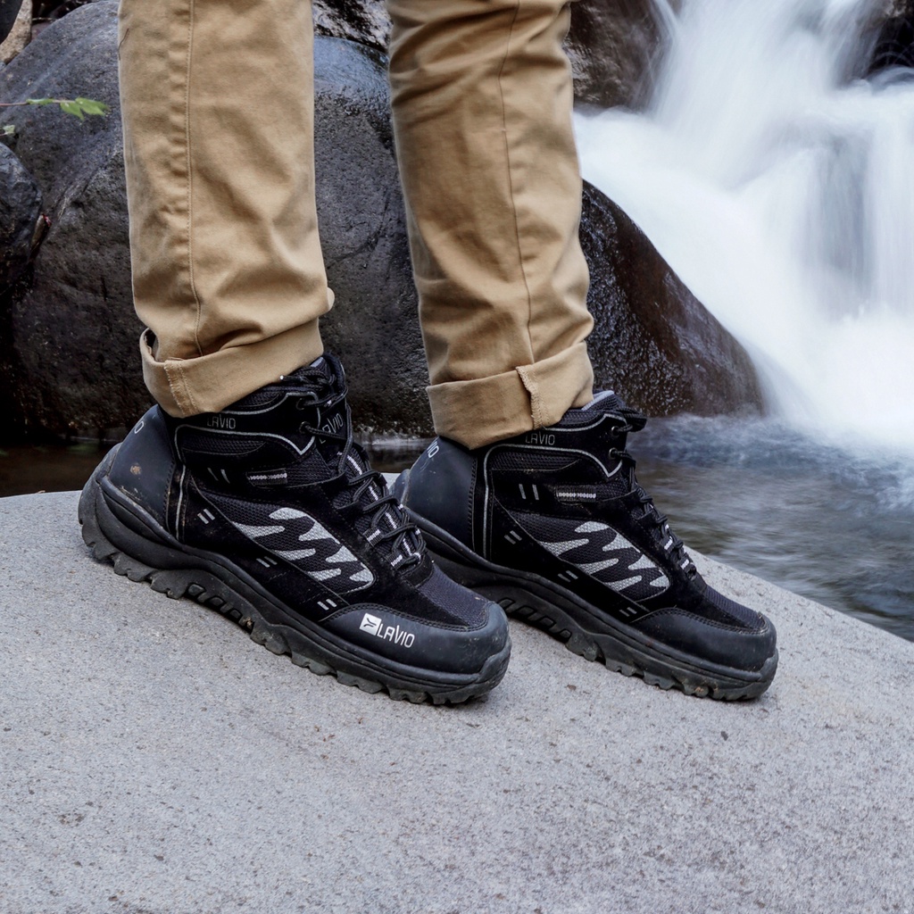 Lavio Sepatu Pria Safety Boots High Premium Quality Axel Booster Mood Hiking Proyek Outdoor Touring Hitam