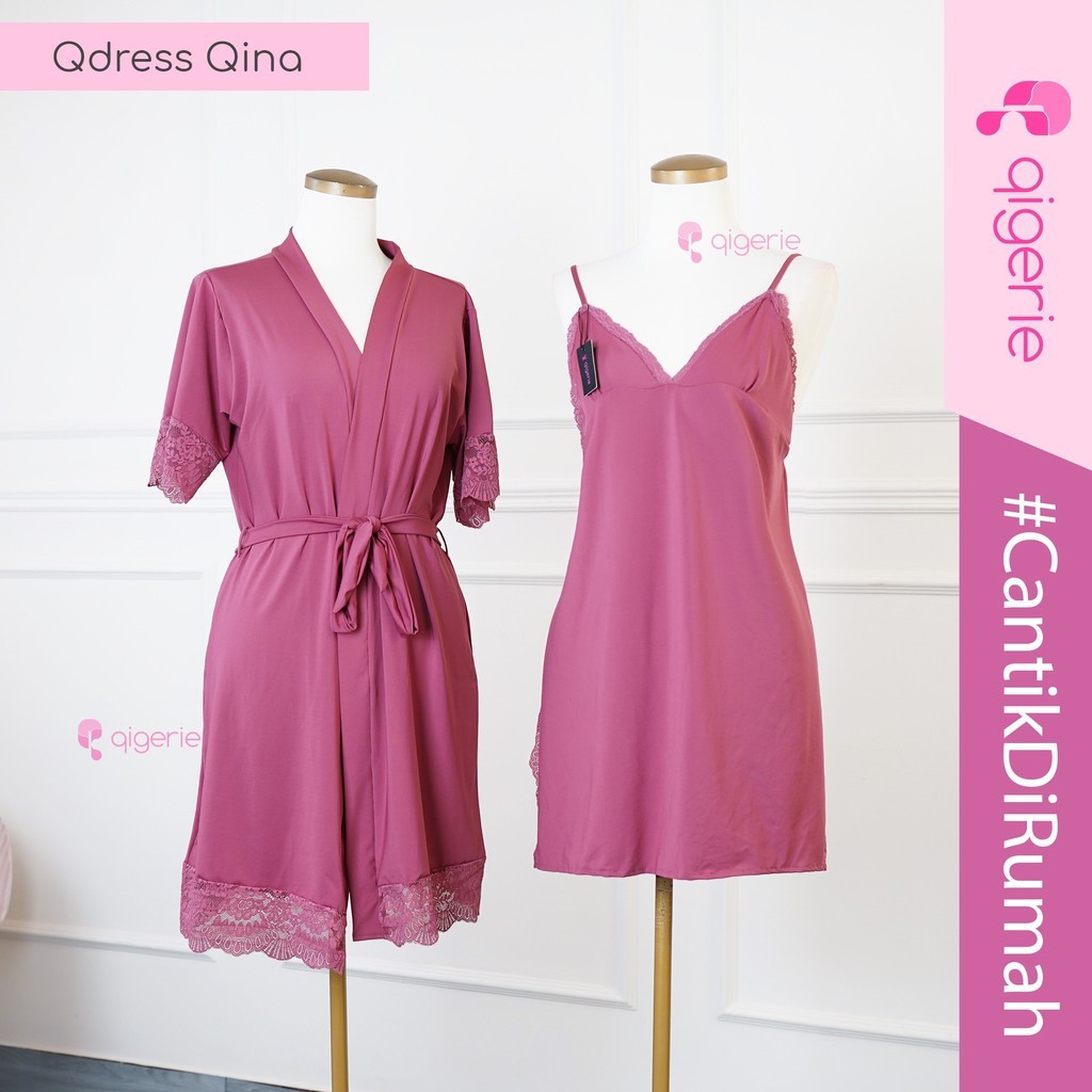 QIGERIE QINA | Baju Tidur Sexy Kimono | One Set Kimono Lingerie | Daster Kekinian