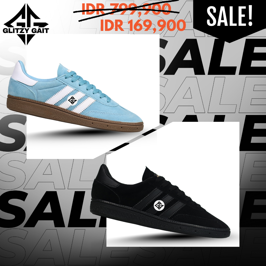 PROMO TERBATAS SPEZIAL 100 PERSEN BNIB SEPATU CASUAL HANDBALL SPZL PRIA WANITA ICE BLUE FULL BLACK