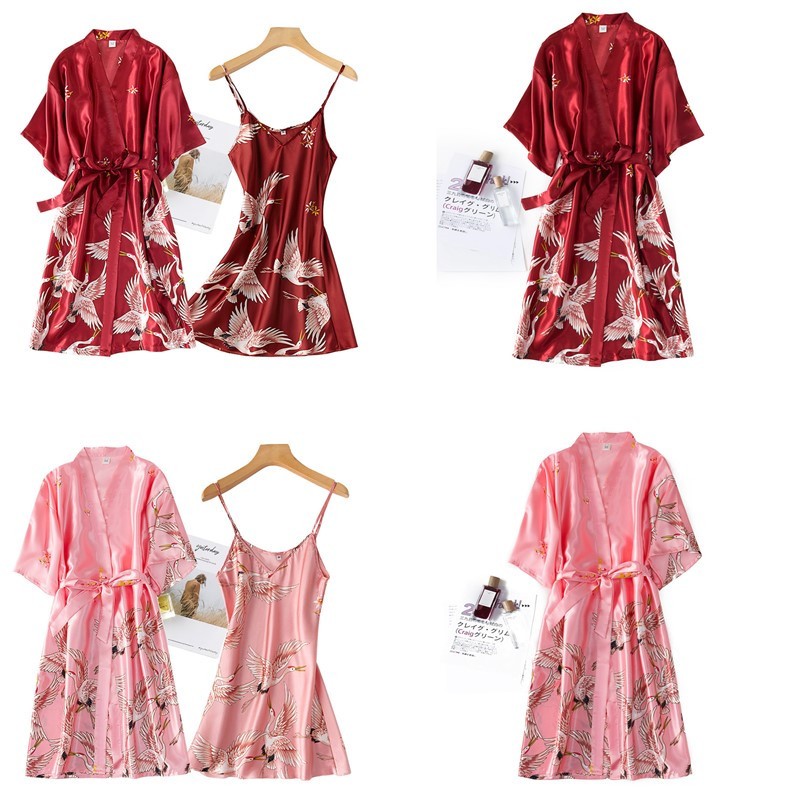 Gaun tidur wanita dewasa/gaun kimono wanita/set kimono dua-dalam-satu