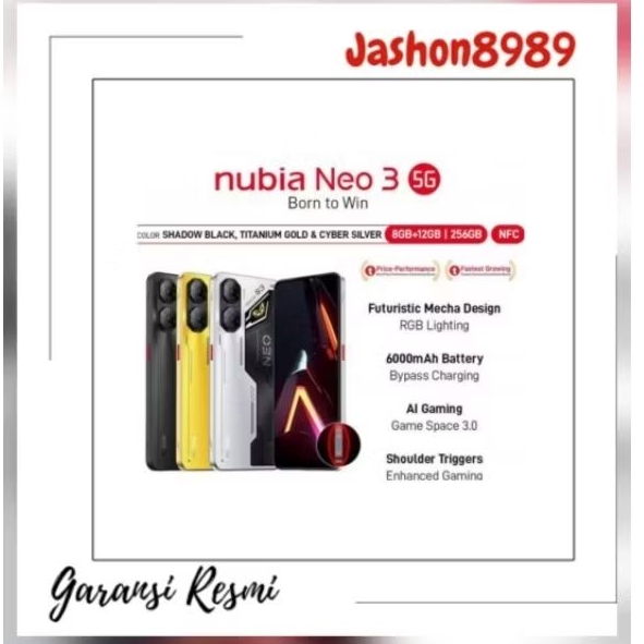 ZTE NUBIA NEO 3 5G 8/256GB GARANSI RESMI ZTE NUBIA