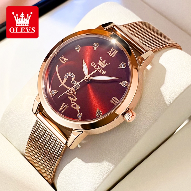 OLEVS Jam Tangan Wanita Anti Air Original Terbaru 2026 Hadiah Mewah Set Anti Karat Elegan Kalender Analog