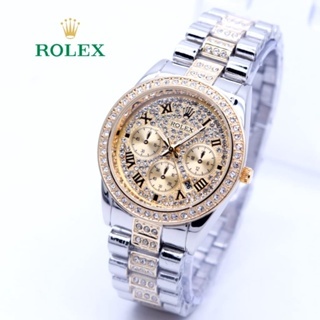 Jam Tangan Wanita Rolex Kupu-Kupu 3Demensi Rantai Body Bulat Tanggal Aktif