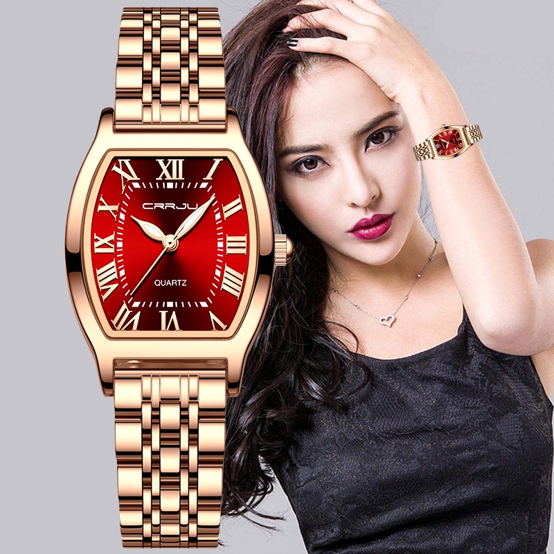 CRRJU Jam Tangan Wanita Original Anti Air Kuarsa Analog Stainless Steel Terbaru 2025 Arloji Cewek el 5013