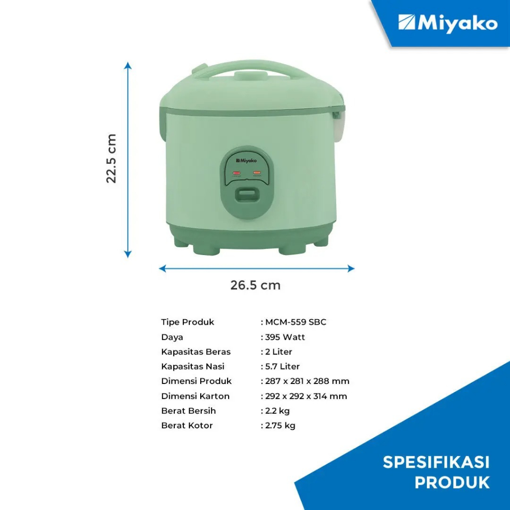 Magic Com Miyako MCM559SBC - Magic Warmer Plus - 2 Liter 3in1 395 Watt Nanoal Seafoam Green