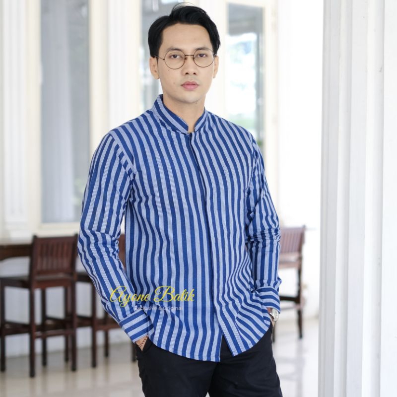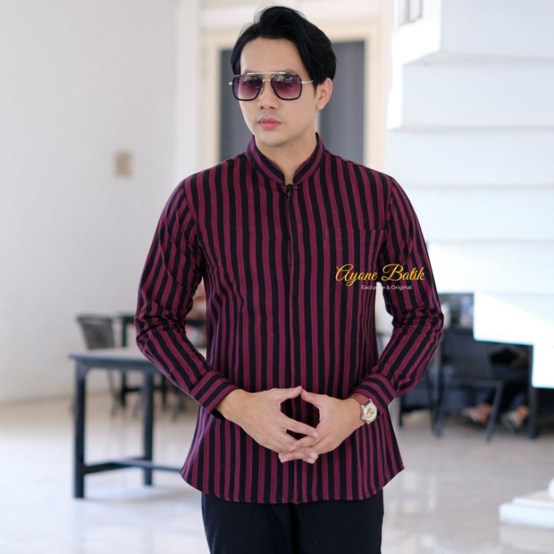Kemeja Lurik Lengan Panjang Pria Lurik Pria Black Grey Lengan Panjang KEMEJA KOKO LURIK Kemeja Lurik Coklat Terbaru