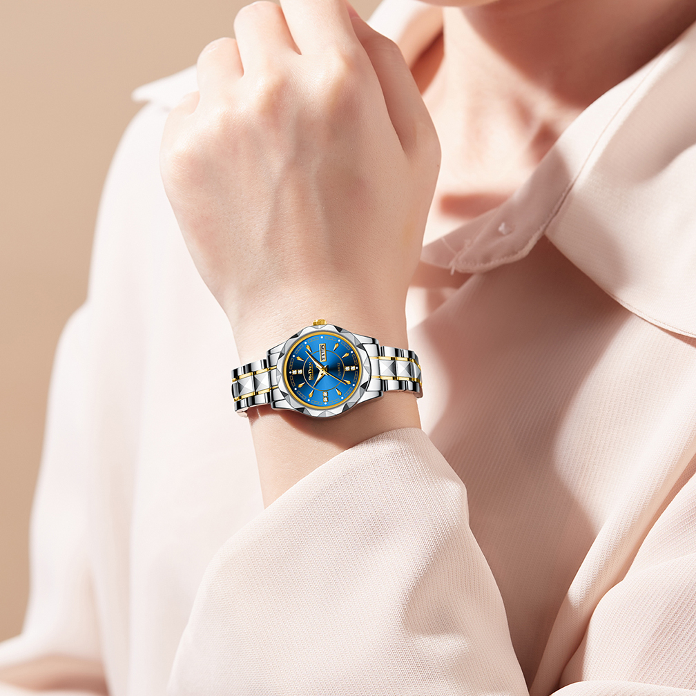 BIDEN Jam Tangan Wanita Anti Air Original S001 Stainless steel Kalender Kuarsa Jam Tangan Cewek Korea