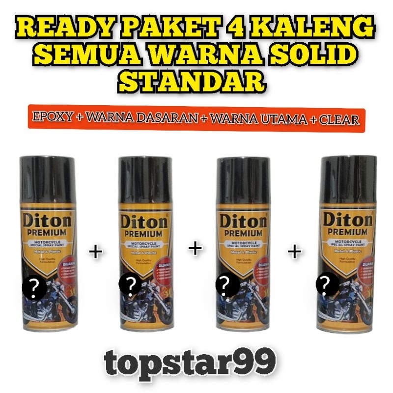 Diton Premium Ready Semua Warna Solid Standar Paket Lengkap 4 Kaleng 400cc Black 9109 Epoxy 9120 Clear 9128 Silver Metal