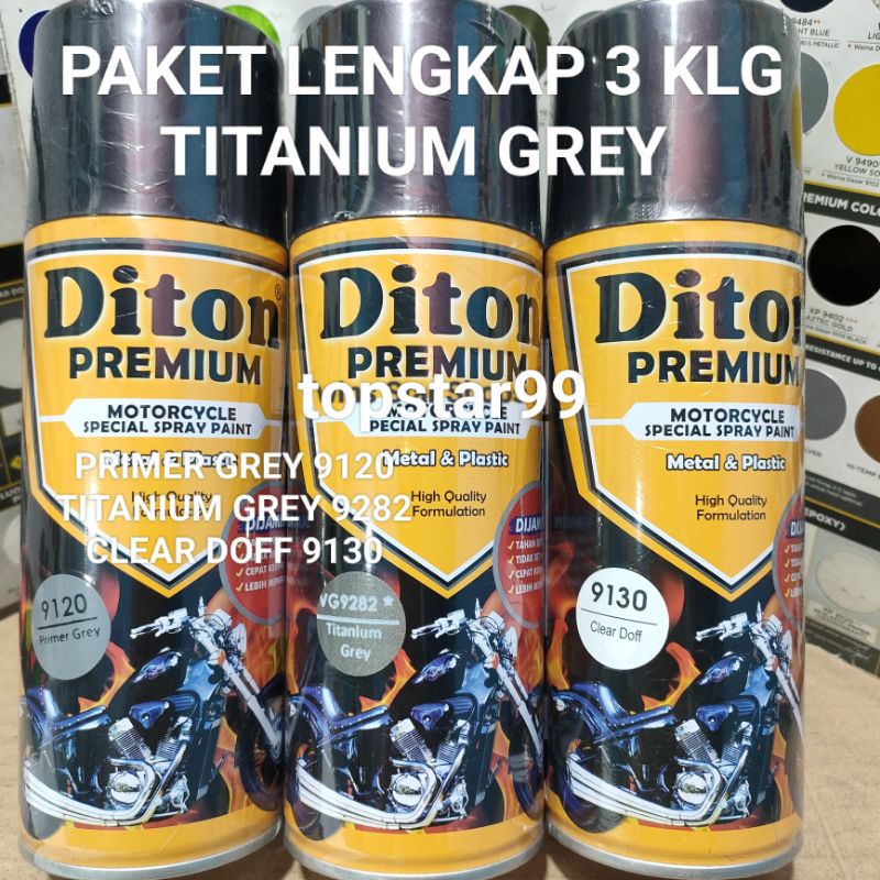 Pilok Cat Diton Premium Paket Lengkap 3 Kaleng Titanium 9282 Primer Grey 9120 Clear Doff 9130 400cc Pilox Paketan Cat Se