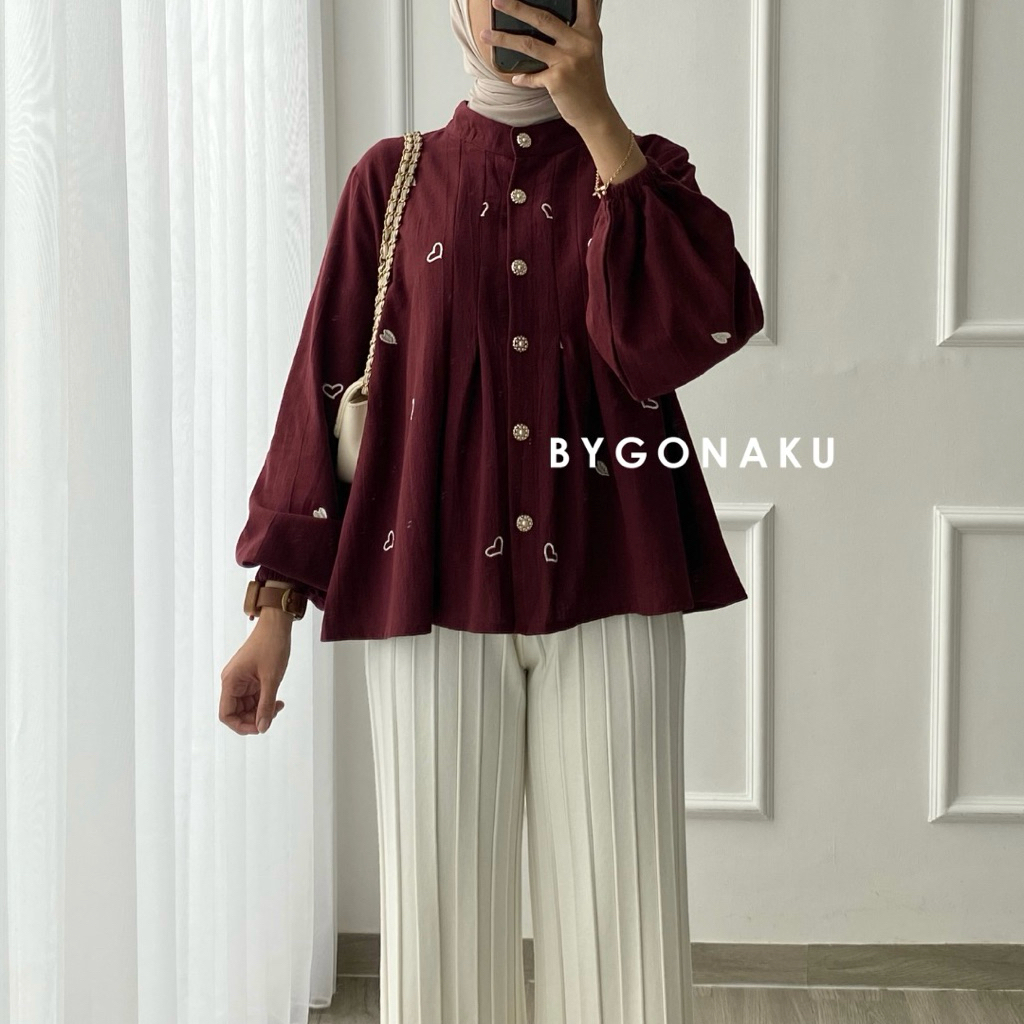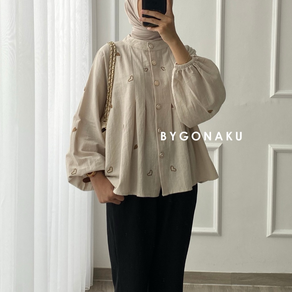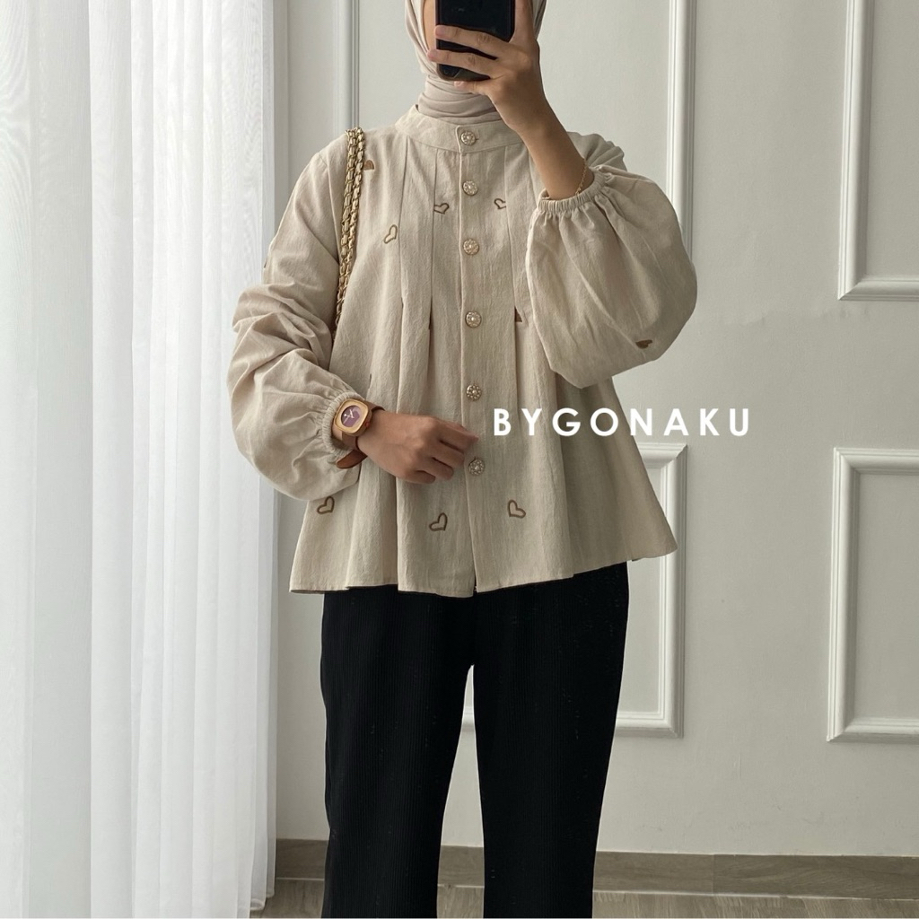 GONAKU Nuna Crop Top Blouse Linen Embroidery Atasan Crop Wanita Baju Kerja Kuliah Korean Style Busui Friendly