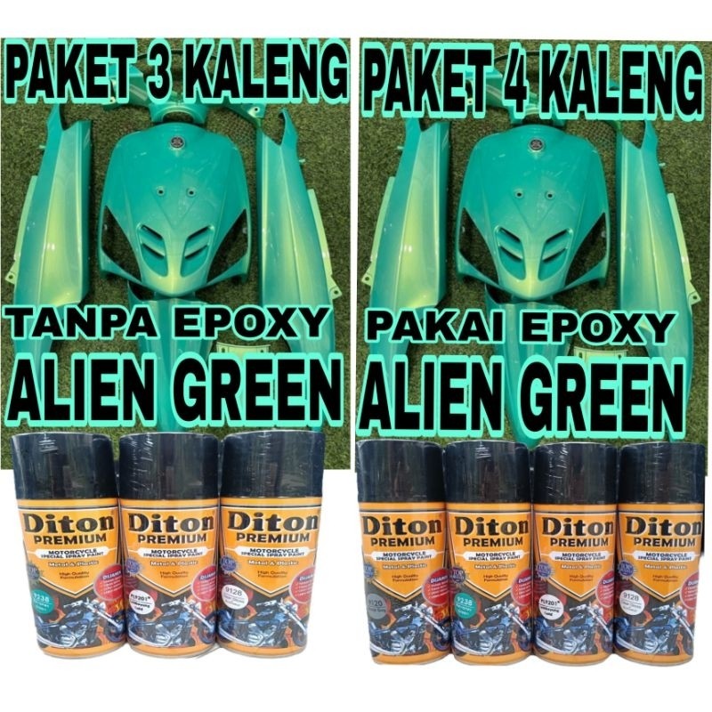 PAKET 4 KALENG PAKAI EPOXY / PAKET 3 KALENG TANPA EPOXY ALIEN GREEN pilox pilox diton premium 9120 primer grey 9238 Petr