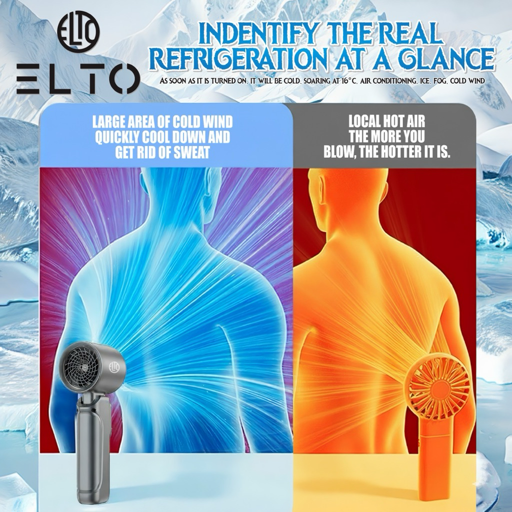 ELTO ET-19 Kipas Angin Portable Mini Turbo Fan USB Rechargeable | Kipas Genggam Tipe-C LED Fan 100 Level Kecepatan Angin Kuat High-Speed