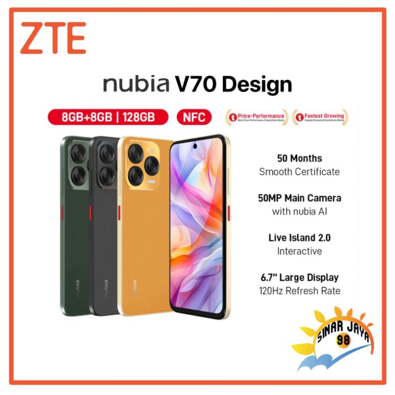 ZTE NUBIA V70D V70 Design 8+8/128GB & 256GB - Garansi Resmi 12Bulan
