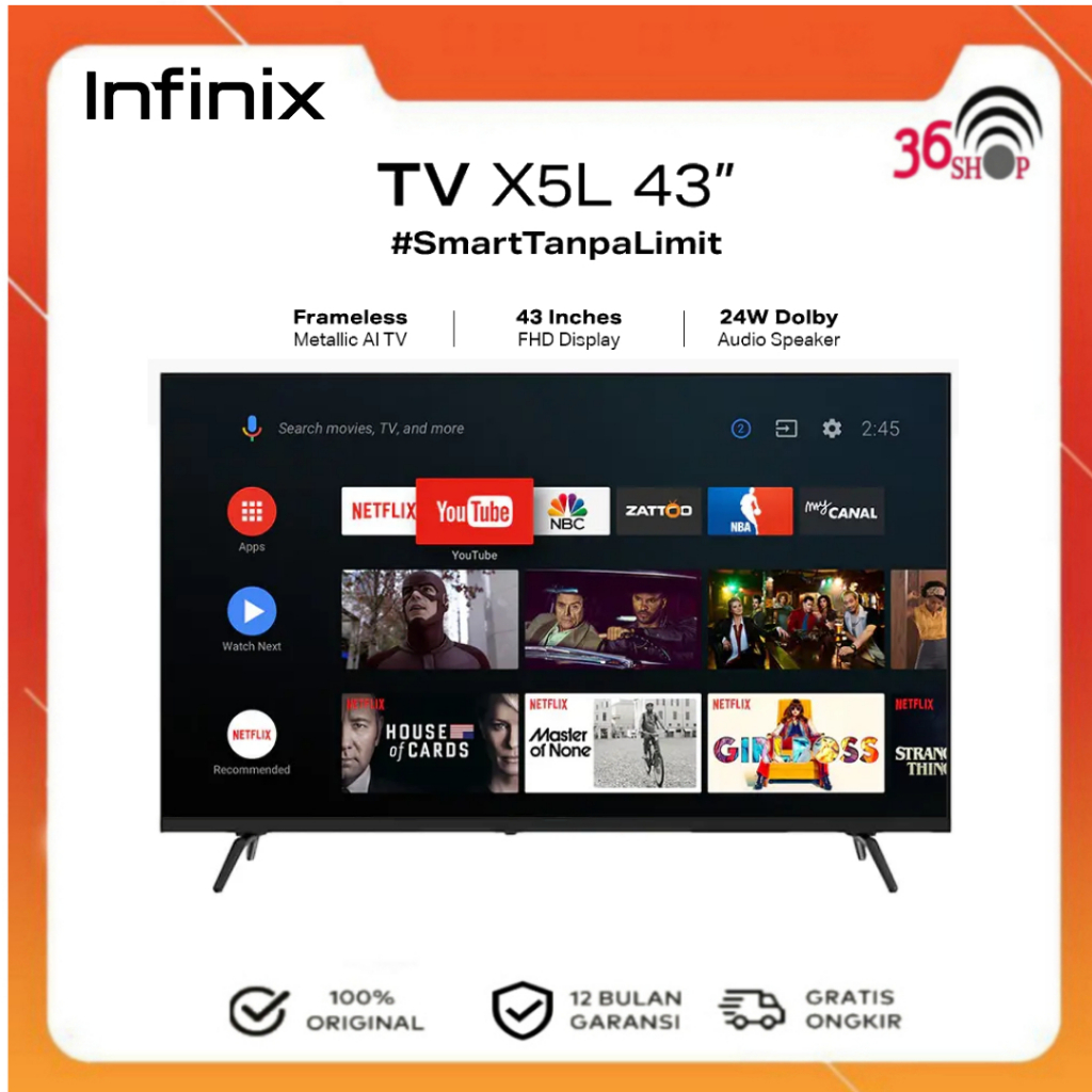 Infinix Smart TV X5L - 43" FHD Display - Android TV - Dolby Audio - Frameless - AI Voice