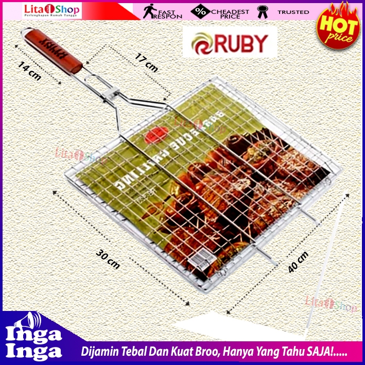 RUBY Panggangan Jepit Alat Panggang Ikan Ayam Sosis Stainless Alat BBQ