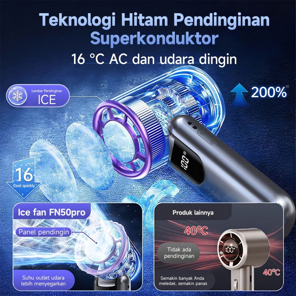 Skylumba Kipas Angin Genggam Portable Mini 100 Speed Konduktor Super Dingin LED Digital Display Stand Ponsel - FN50