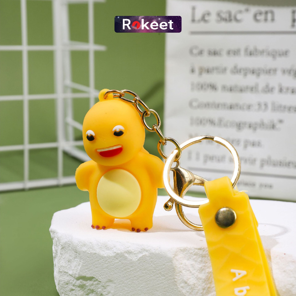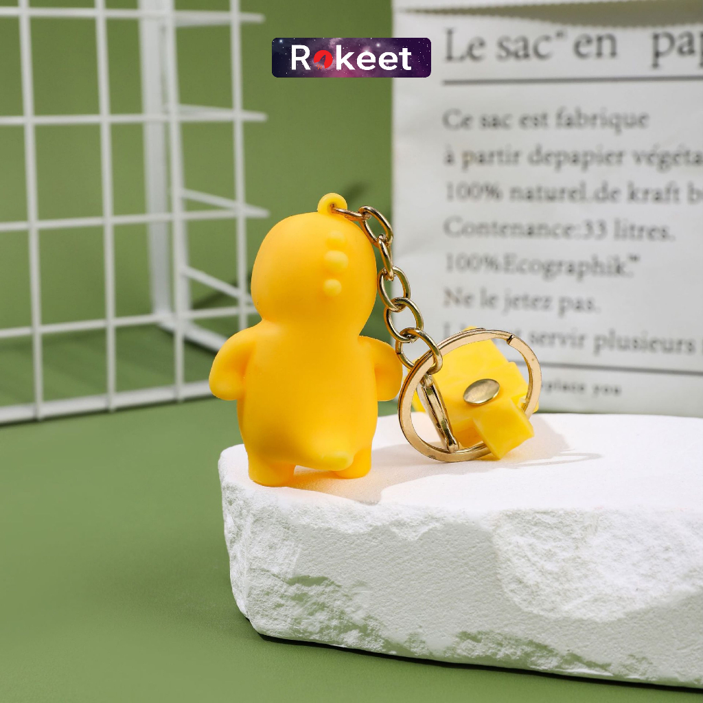 Rokeet Gantungan Kunci Keychain Karakter Kartun Dino Kuning Nailong Hiasan Tas Lucu
