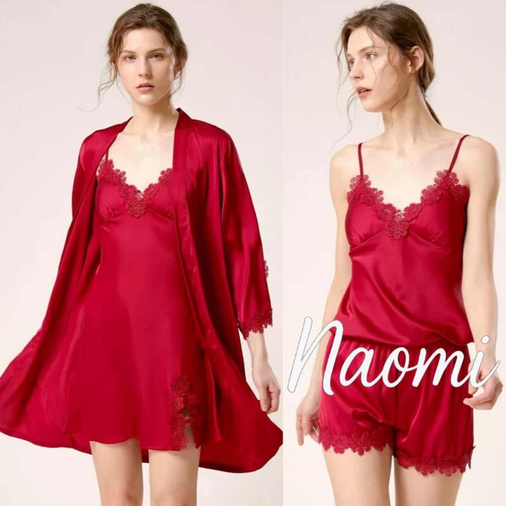 Piyama Wanita 4in1 Set Kimono – Baju Tidur Silk Sutra Premium Import | SHANUM