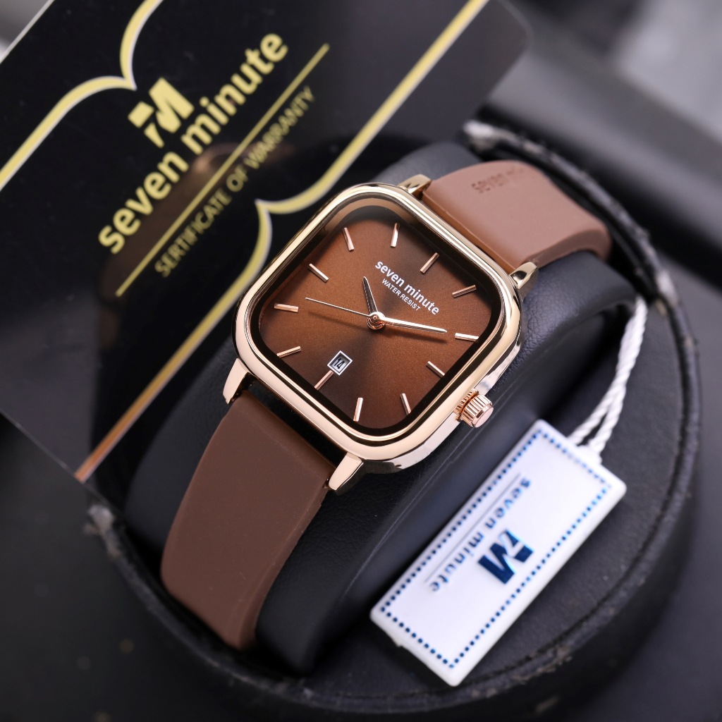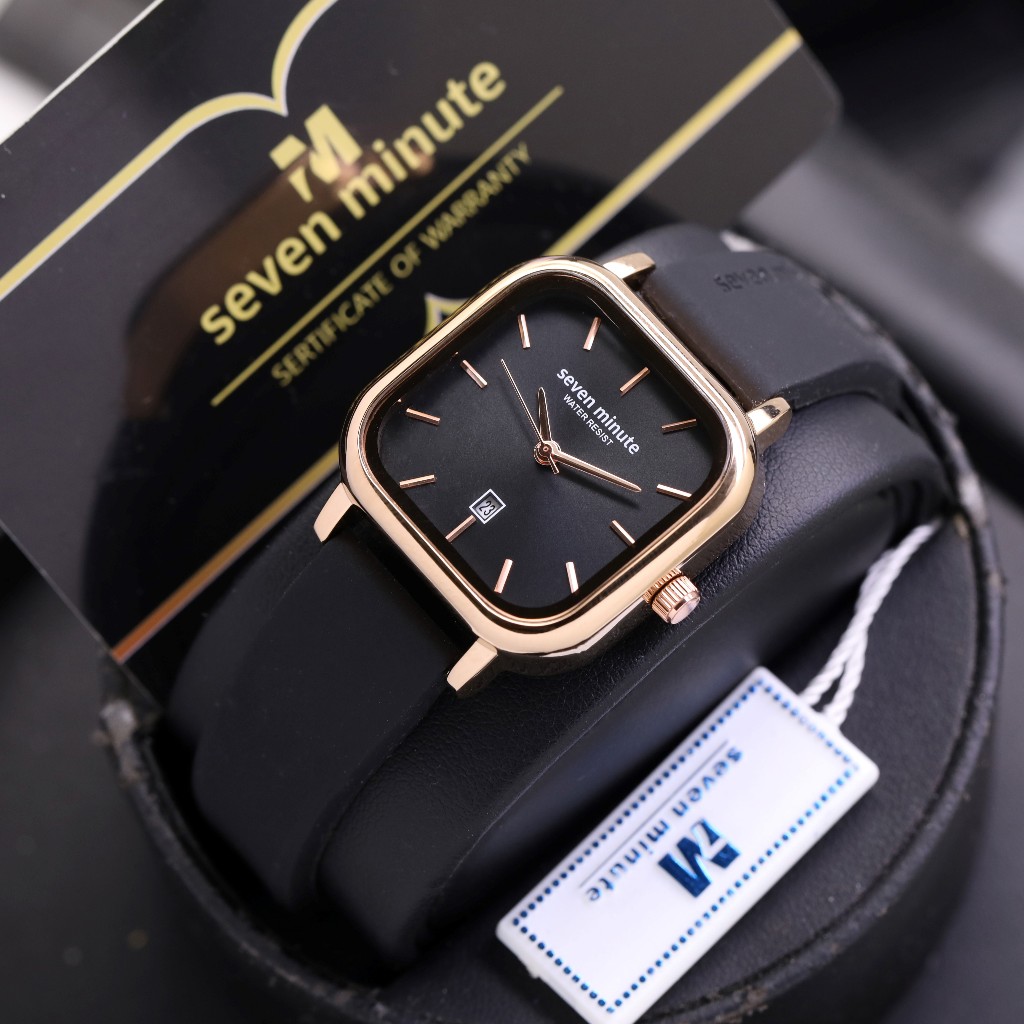 SEVEN MINUTE M756 rubber Jam tangan wanita original segi kekinian quartz tanggal tahan air water resistant