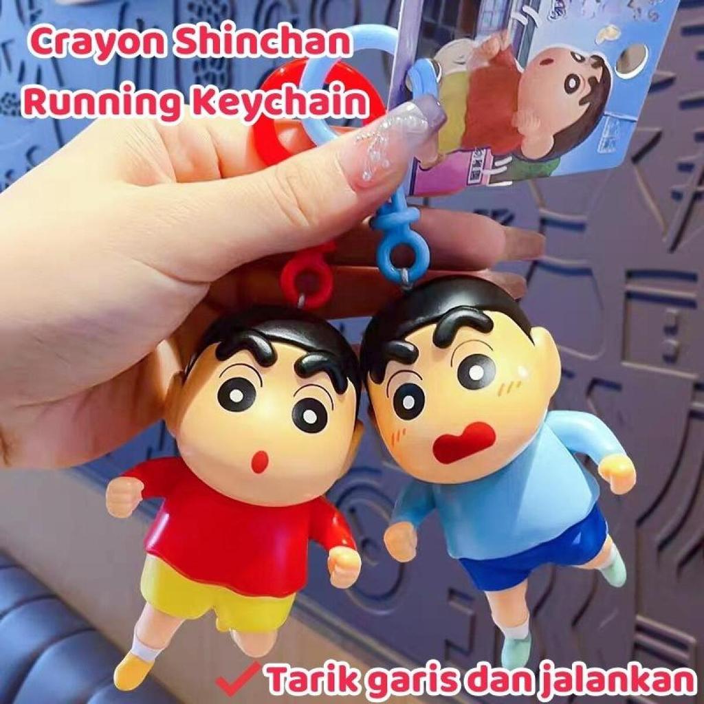 TOYBEBE Tarik Benang Crayon Shinchan Running Keychain Kecil Kartun /Imut Lucu Keychain/ Besar Lucu Pasangan Keychain/Gan