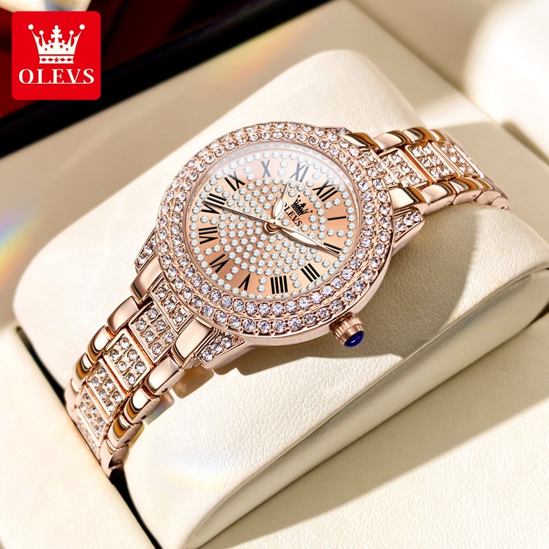 OLEVS Jam Tangan Wanita Anti Air Original Unik Berlian Stainless Steel Fashion Bisnis Rose Analog Womem Watch el