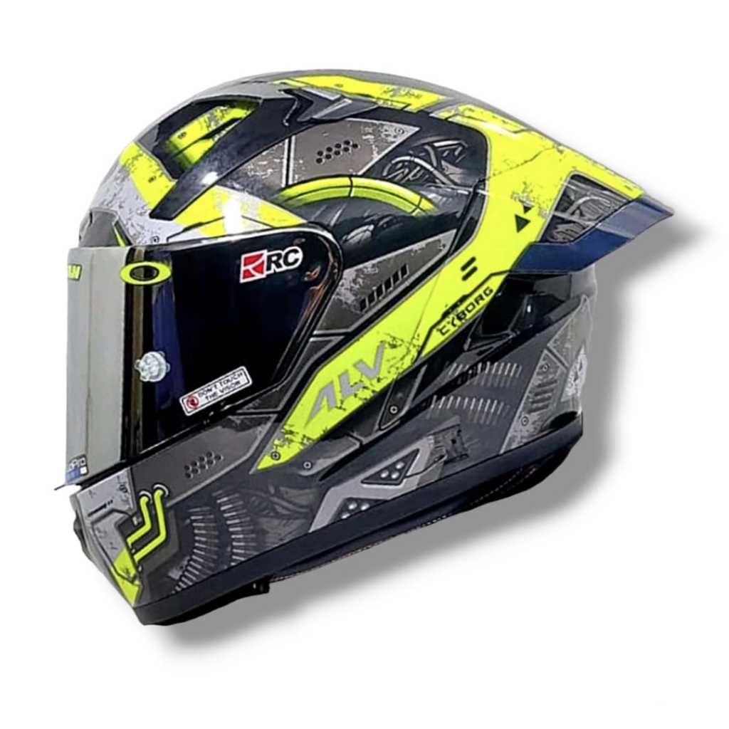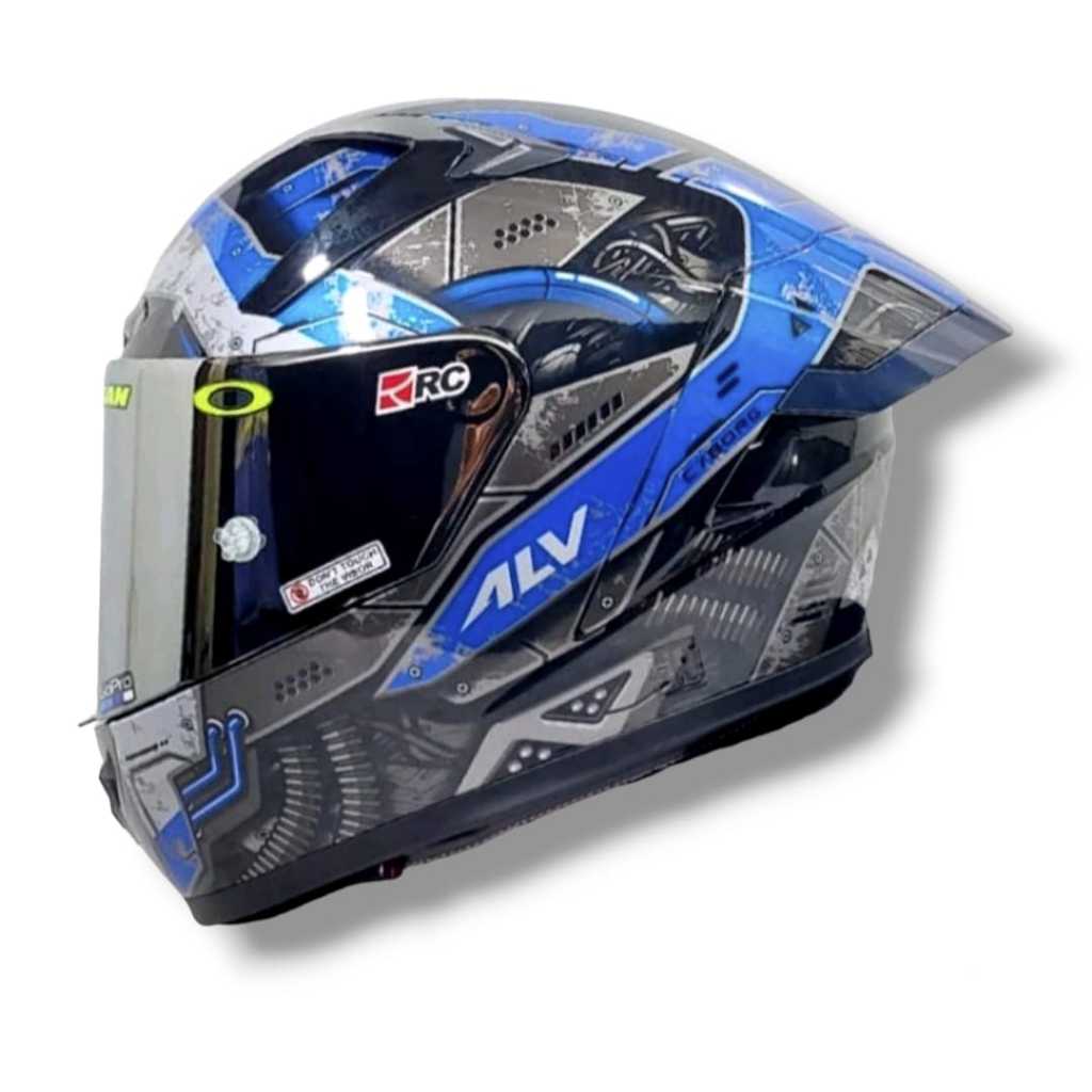 Helm ALV GENESIS MOTIF CYBORG BLUE Kaca Visor Silver | Helm Full Face Premium Pria dan Wanita Dewasa Original SNI