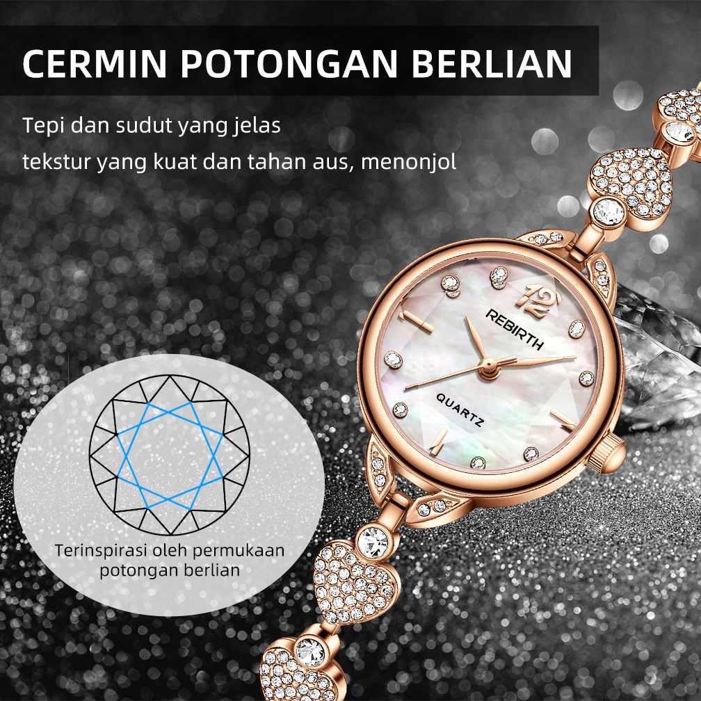 REBIRTH Jam Tangan Wanita Tali Berlian Mewah Korea Anti Air Kuarsa Jam Tangan Cewek Original
