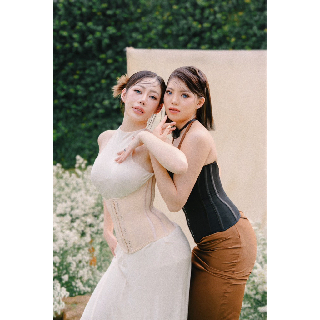 Korset V Mesh Black & Cream 25 Tulang + Extender