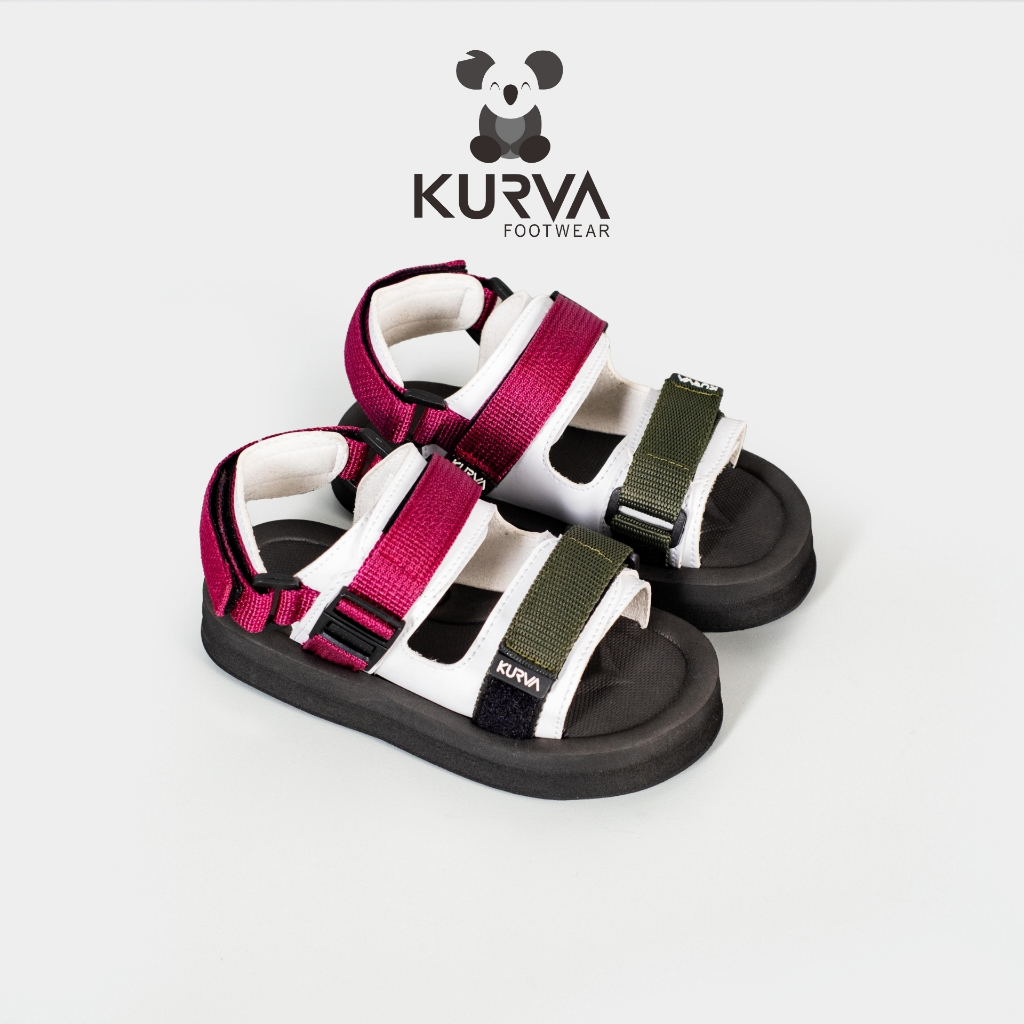 [TOP COLLECTION] KURVA - LESLY Black White Sandal Gunung Anak/Balita Laki-laki/Perempuan - Original Footwear