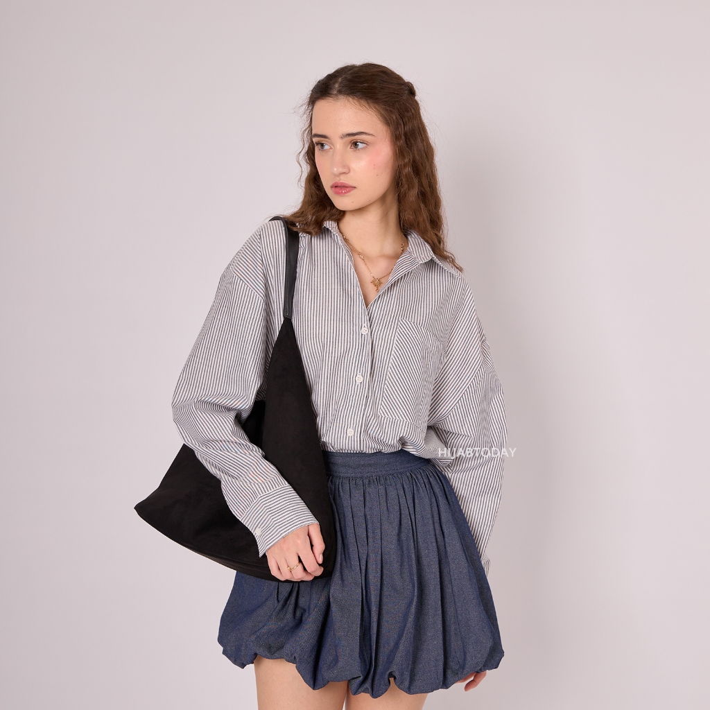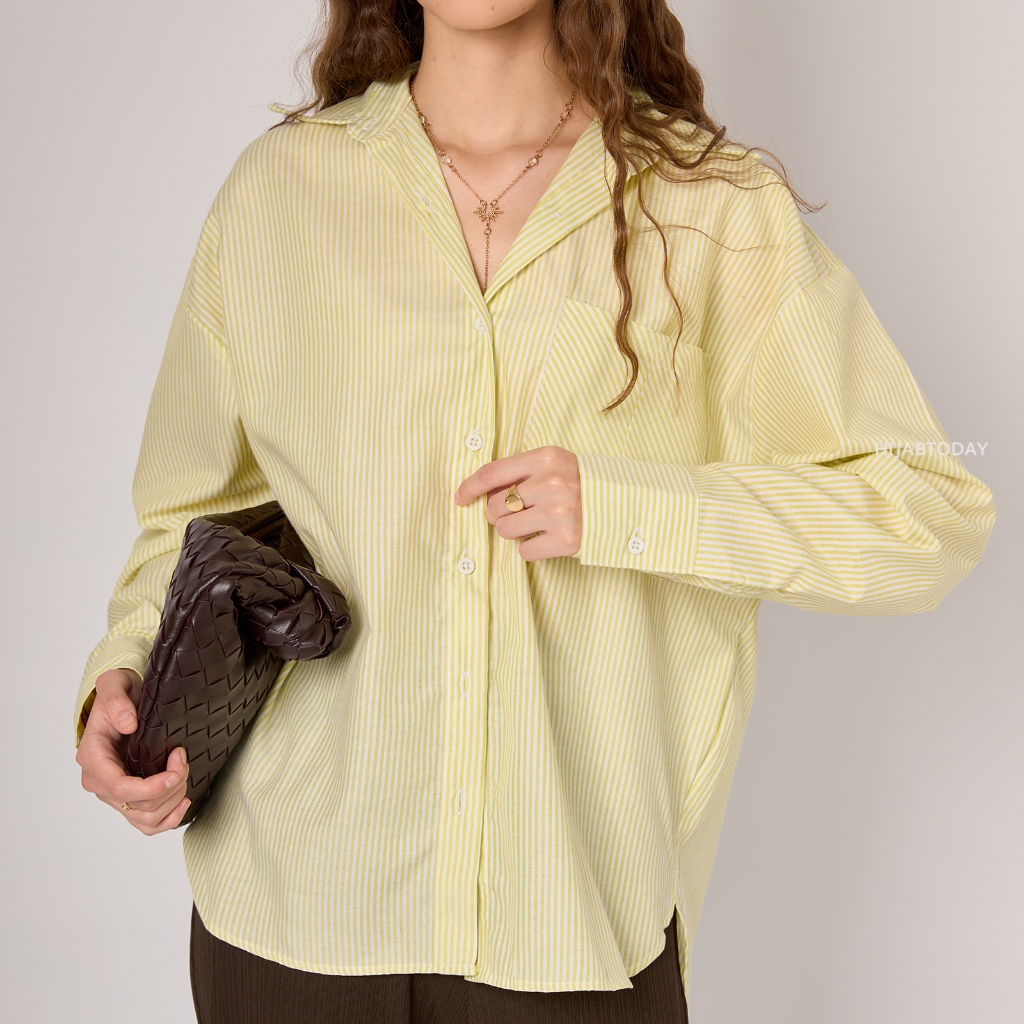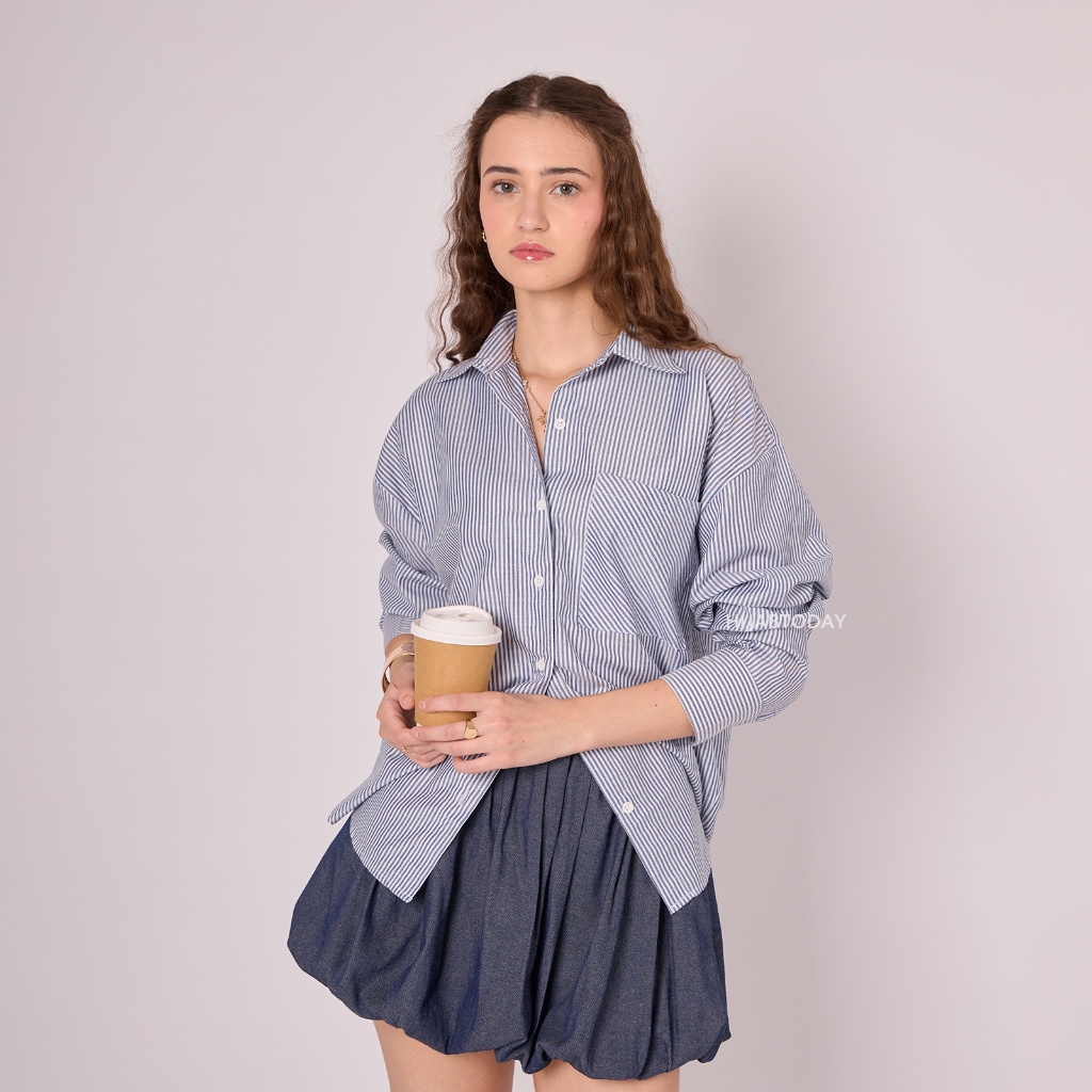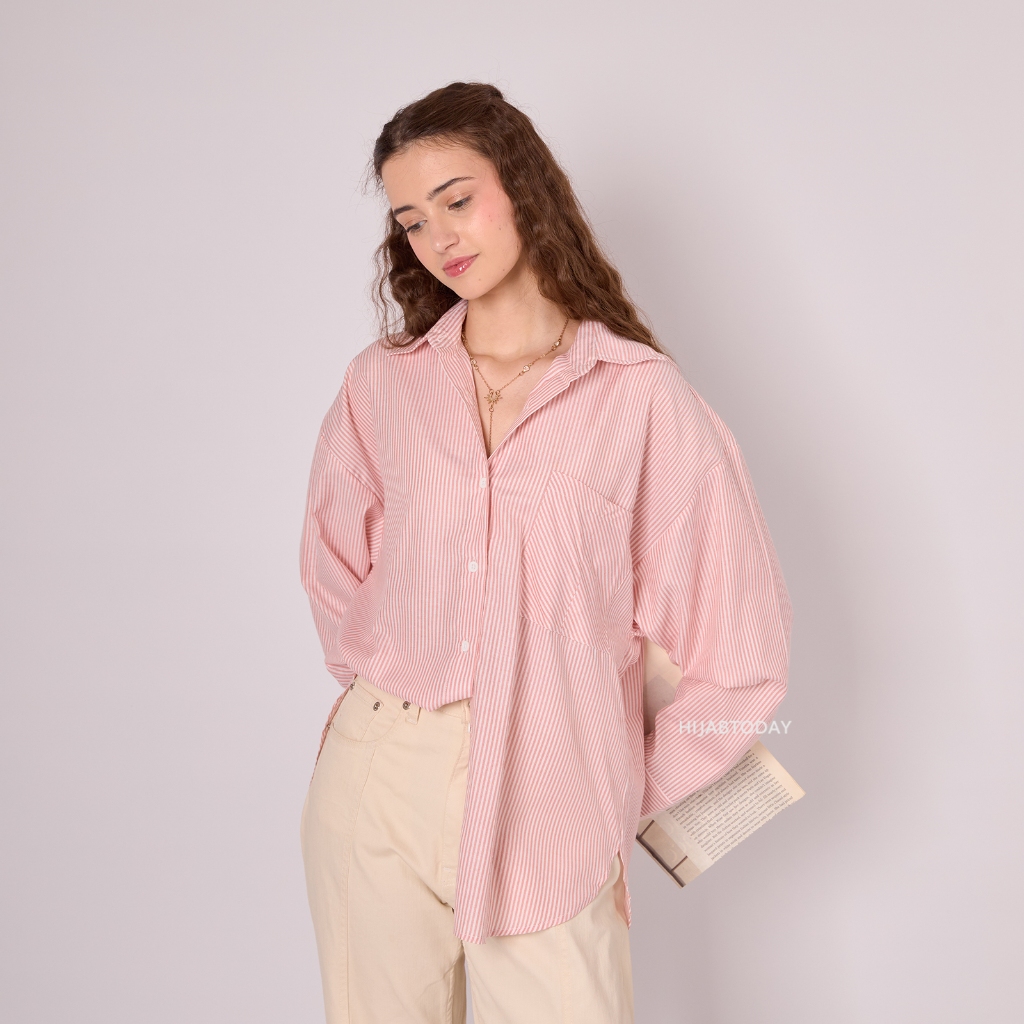 Nicky Shirt - Kemeja Basic Stripe Wanita Premium Lengan Panjang - Bisa Sampai Big Size SM, LXL 90kg HT by Fashiontoday