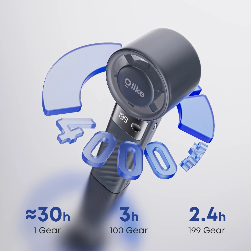 Kipas Angin Mini Portable OLIKE PF8 Turbo – Foldable, 199 Gear, 12.800 RPM, Adjustable Turbo Flow