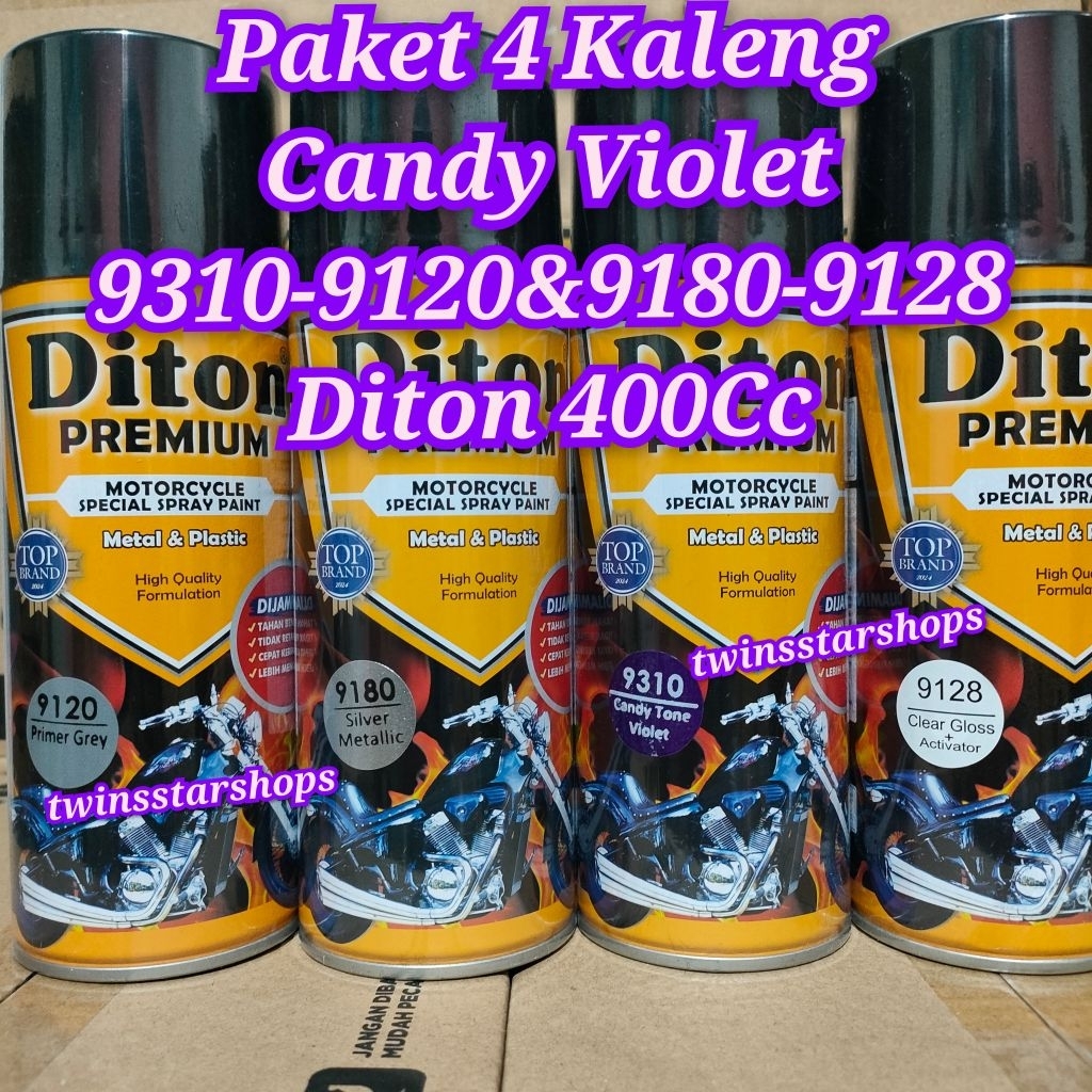 Pilok Pilox Pylox Cat Diton Premium Paket 4 Kaleng Ungu Candy Violet 9310 Silver Metallic 9180 Silper 9124 Epoxy Primer