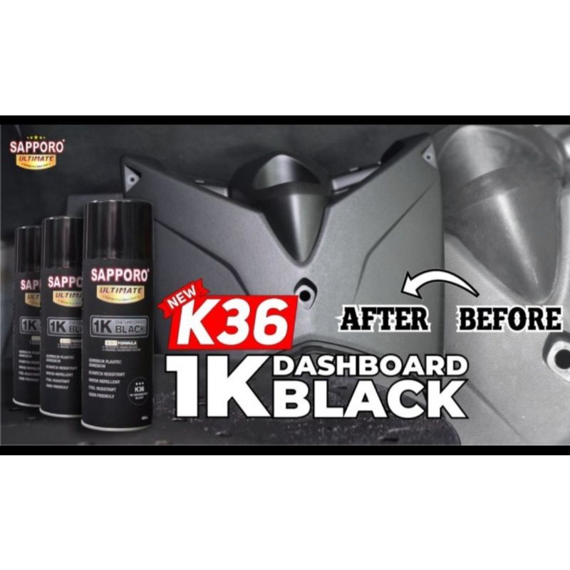 SAPPORO ULTIMATE K36 1K DASHBOARD BLACK CAT SEMPROT AEROSOL SPRAY PAINT WARNA HITAM saporo tahan bensin no merk PYLOX DI