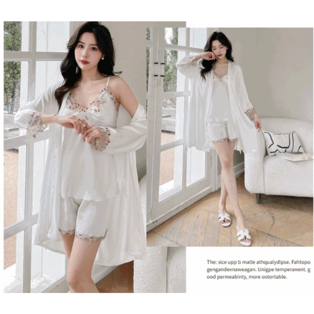 Piyama Set Baju Tidur Wanita BS-7799 Kimono 5 in1 Sexy Baju Rumah Sleepwear Satin Premium Mimon Home