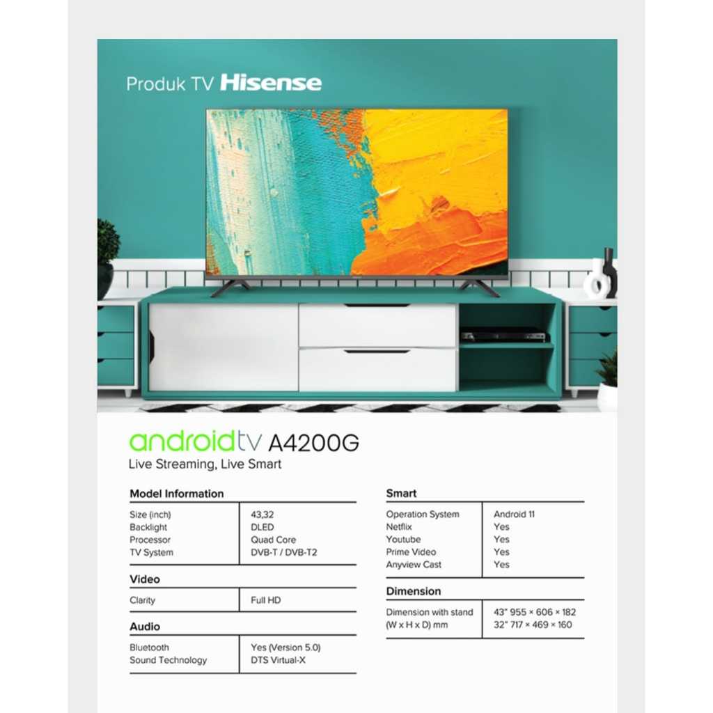 Hisense Smart Android Digital TV 32 inch Full HD Bezeless 32A4200G Bonus Bracket dan Kabel HDMI