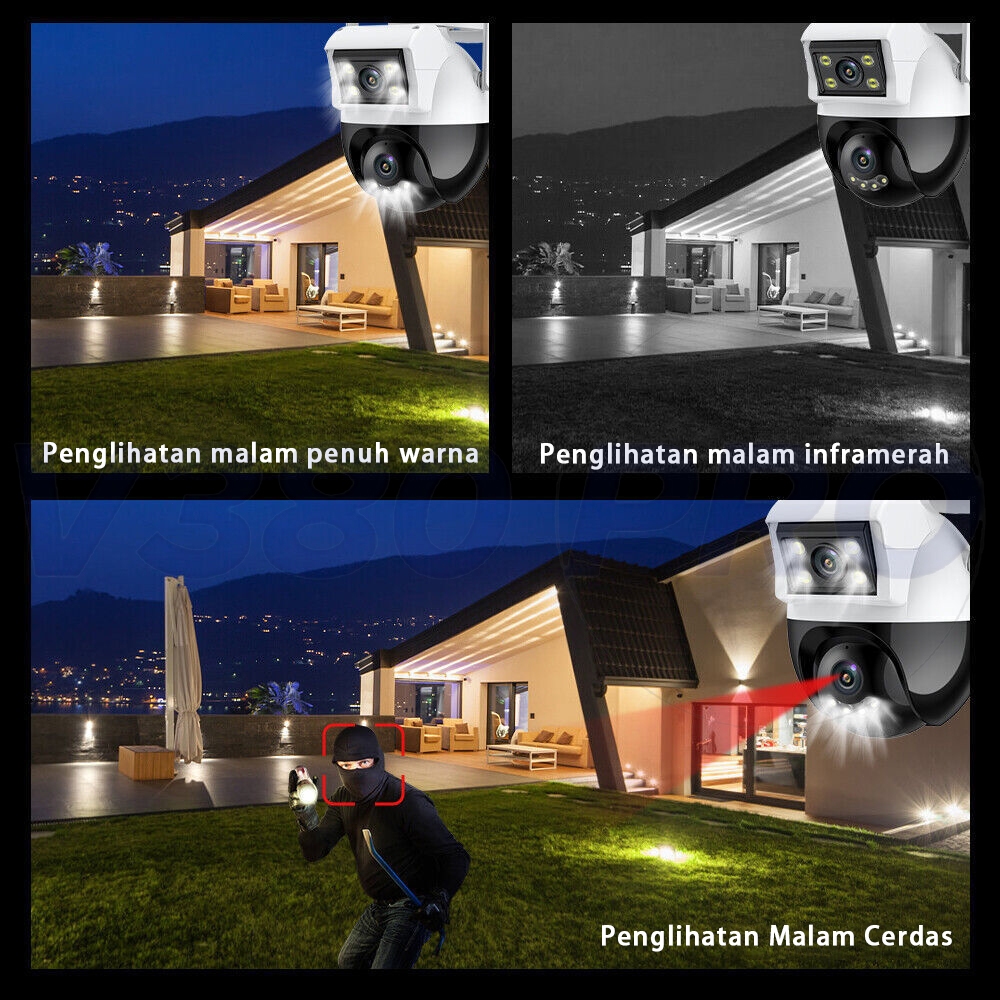 V380 Pro CCTV WiFi 8MP Lensa Ganda Outdoor Tahan Air IP66 Kamera CCTV PTZ Kamera HP Jarak Jauh