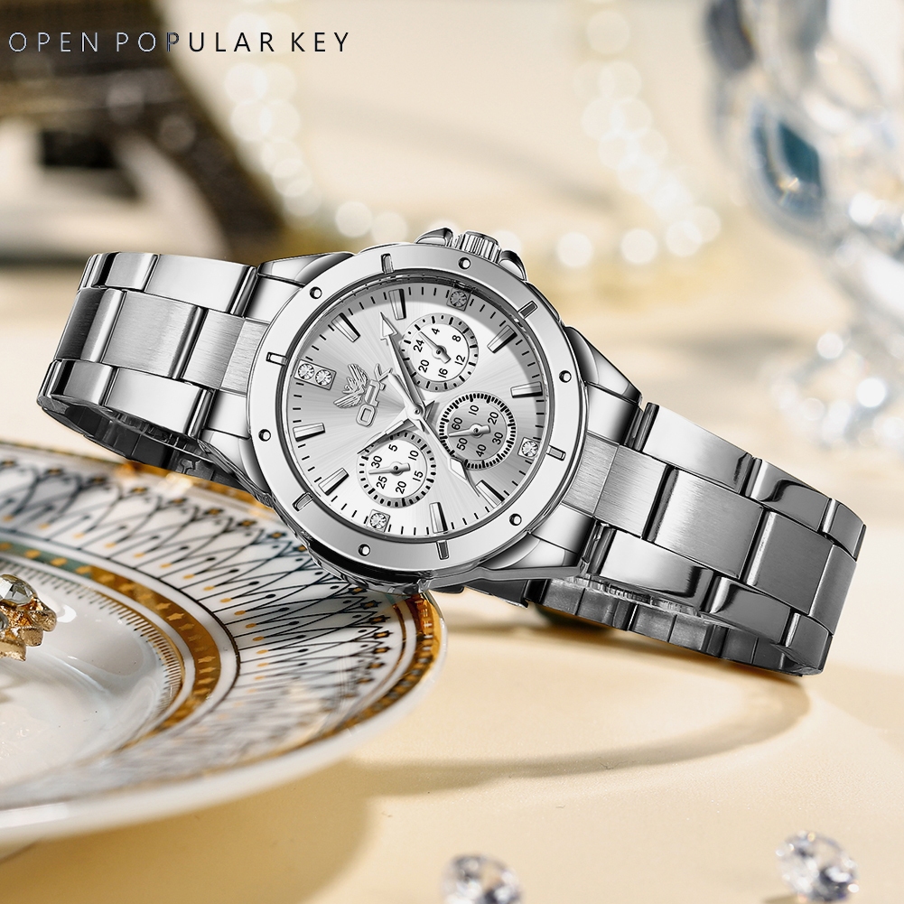 OPK Jam Tangan Wanita Anti Air Original Kecil Korea Analog Tahan Air Putih Stainless Steel Women Watch Hadiah Mewah