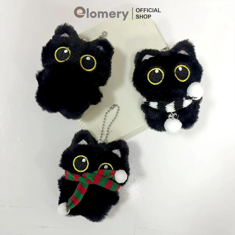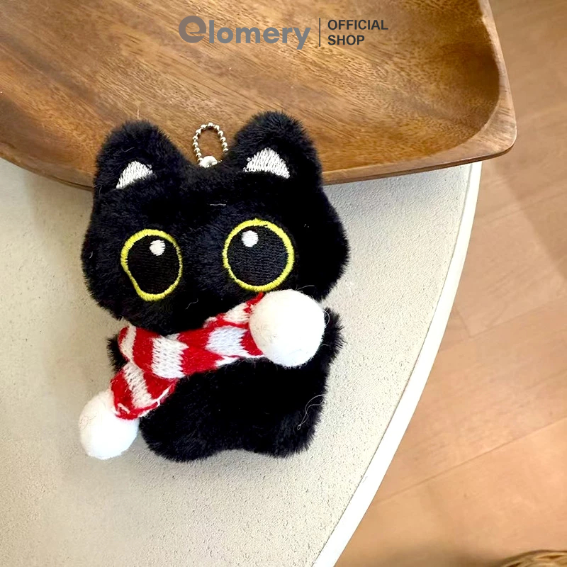 Elomery Gantungan Kunci Lonti Lucu dengan Kucing Hitam Dan Syal