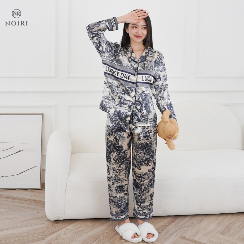 NOIRI - LUCKY DAY Baju Tidur Lengan Panjang Setelan One set Wanita Dewasa Lengan Pendek Celana Pendek Bahan Satin Premiu