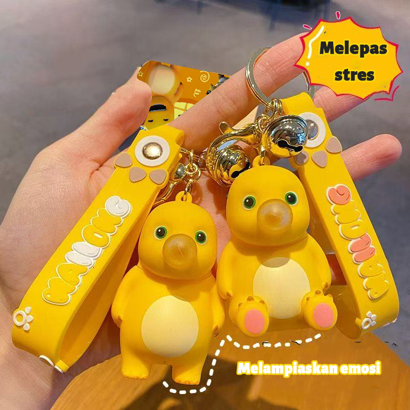 JAKI(Free 2 Gelembung Pengganti)Gantungan Kunci Dino Gelembung Kuning Gantungan Kunci Nailong Kuning