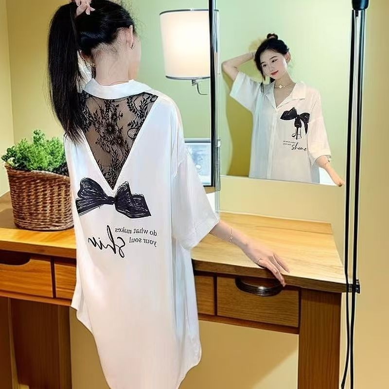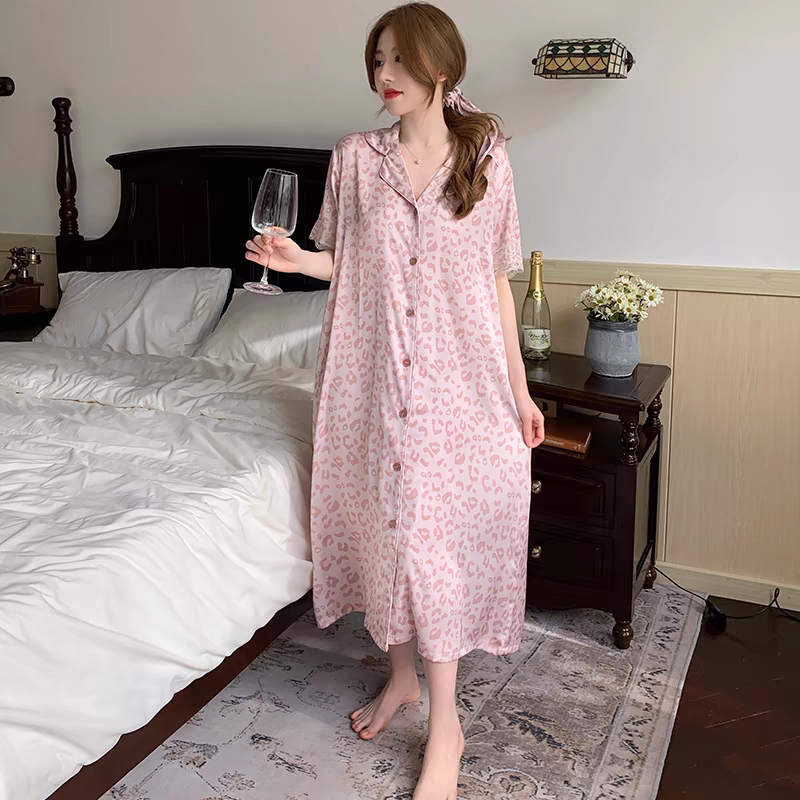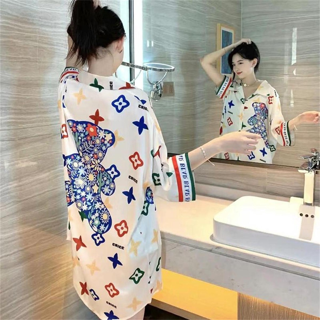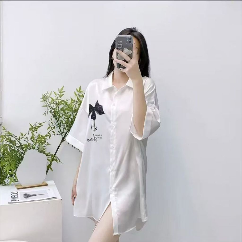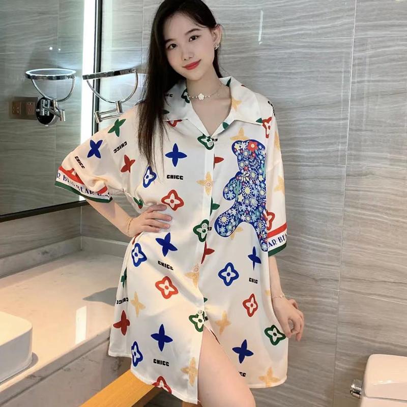 Dress tidur korea wanita jumbo sutra es premium print lucu piyama tidur wanita dress kemeja