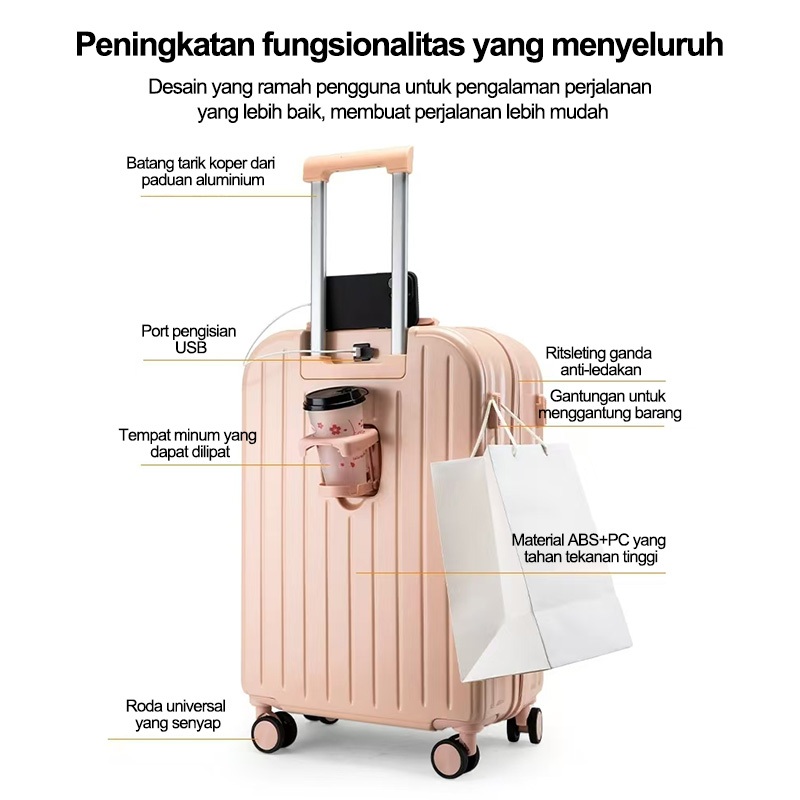 BAOERDEN kapasitas besar Koper 24 Inch 20 / 22 inch travel kabin bagasi laptop new design bagasi stand cup charge