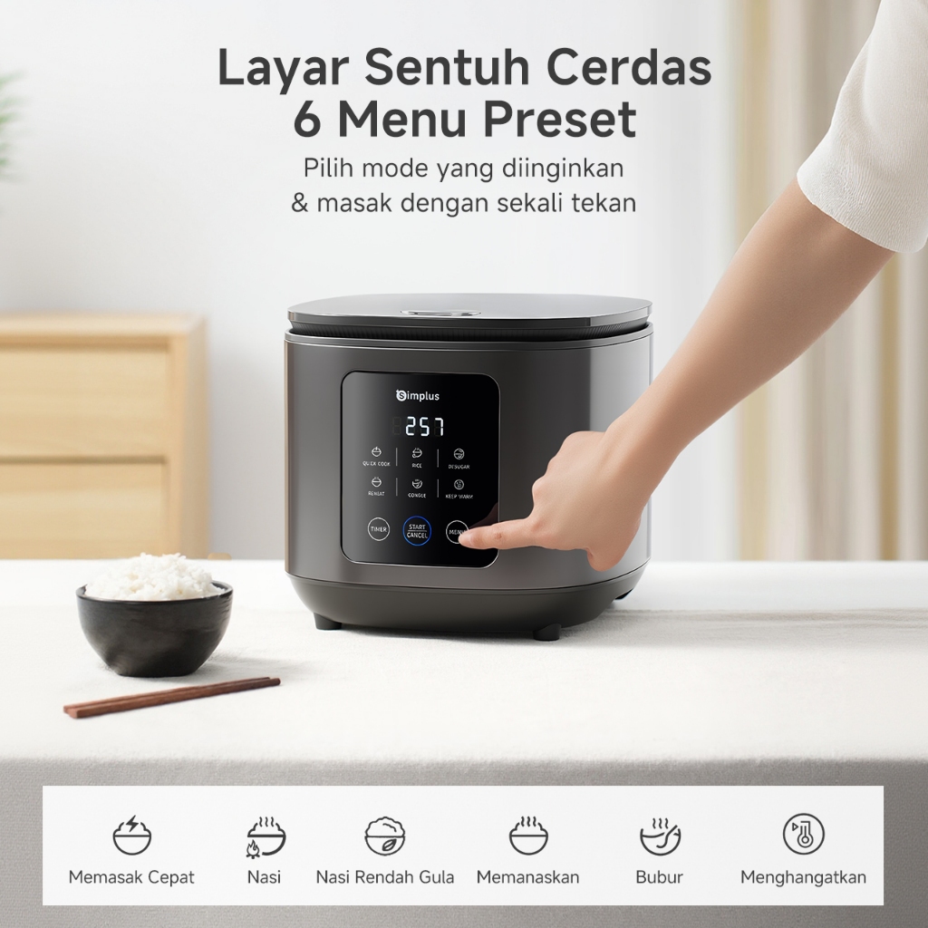 Simplus Rice Cooker MagicCom 4L Nasi Rendah Gula Rendah Kalori Anti lengket 6 Menu Preset Timer 24 Jam